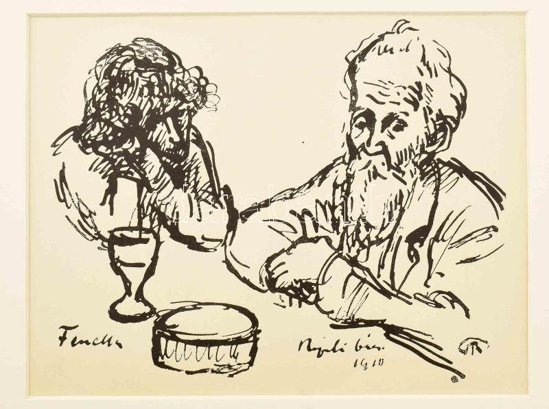 Leírás: Rippl-Rónai József (1861-1927): Fenella és Rippl bácsi. Cinkográfia, papír, jelzett a cinkográfián, paszpartuban, 16×22 cm
