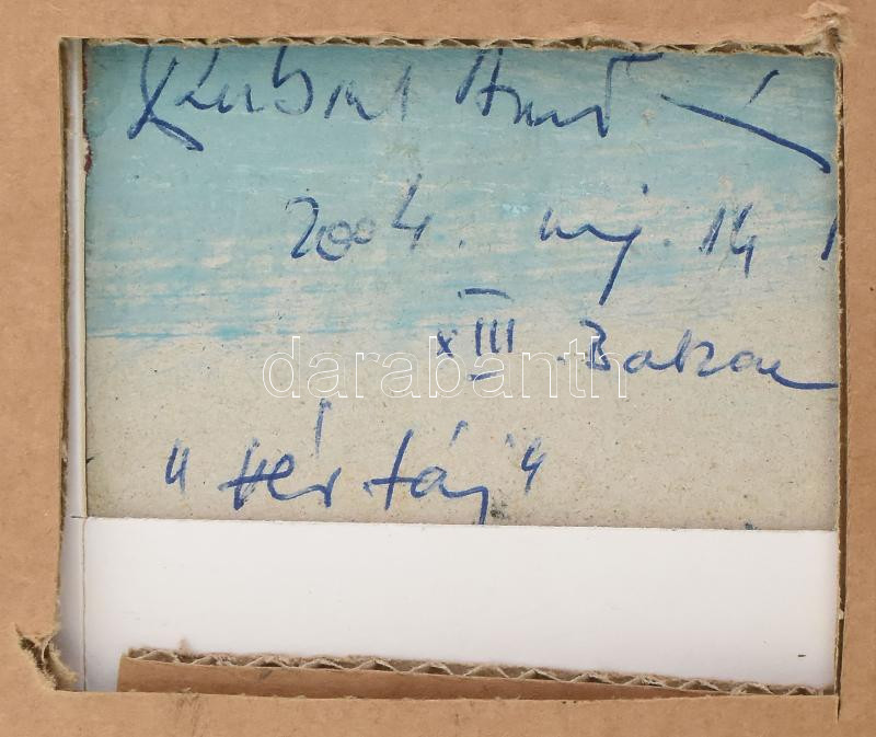 Leírás: Rubint Ávrahám Péter (1959-): (...) táj, 2004. Olaj, karton, jelezve jobbra fent, hátoldalán autográf felirattal, fakeretben. 11x11 cm