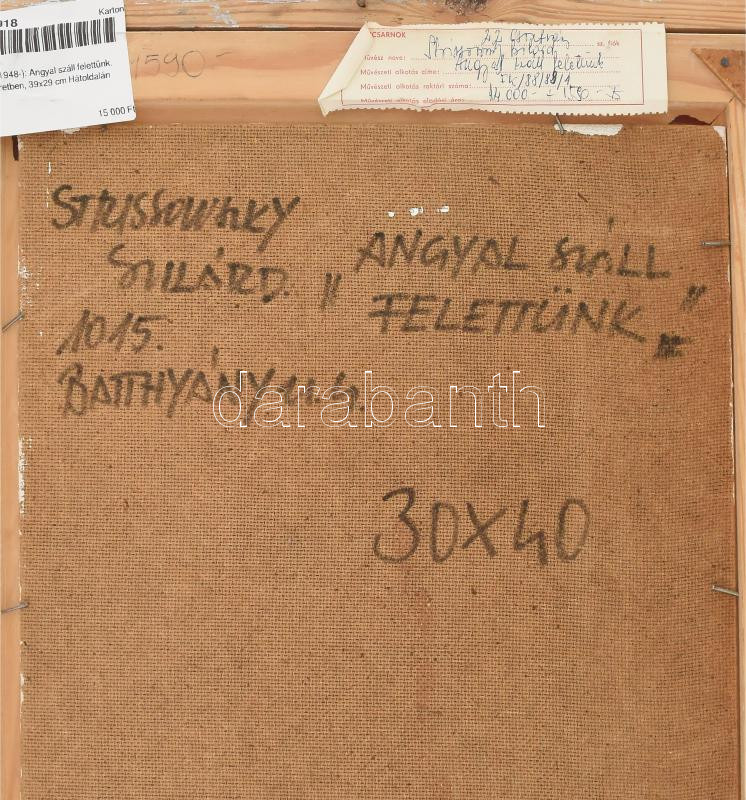 Strissowszky Szilárd (1948-): Angyal száll felettünk. Olaj, farost, je... https://www.darabanth.com/hu/469-Gyorsarveres/469.0/Festmenyek-es-grafikak/Festmenyek-es-grafikak~500001/Strissowszky-Szilard-1948-Angyal-szall-felettunk-Olaj-farost-jelzett-keretben-39x29-cm-H~II3168918