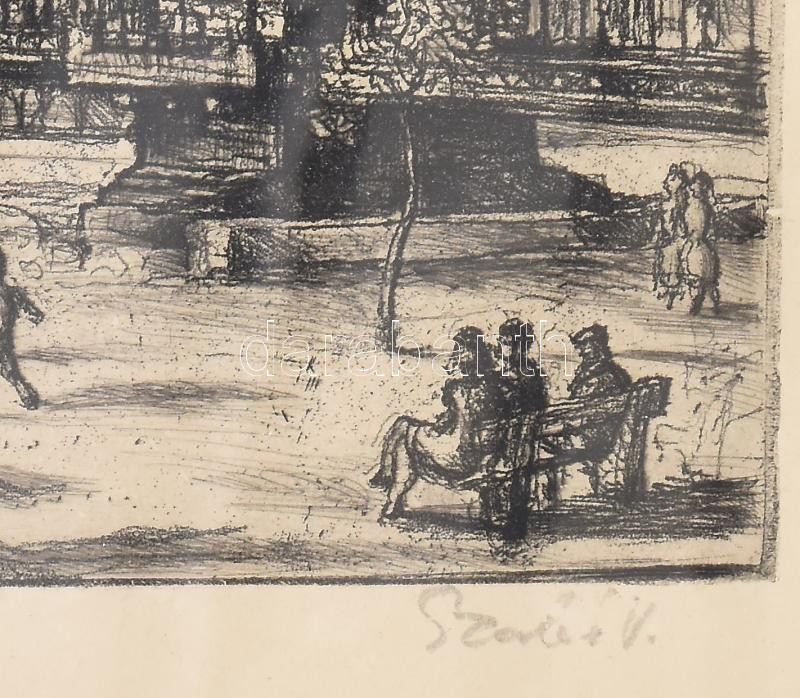 Leírás: Szabó Vladimir (1905-1991): A Széchenyi-Lánchíd. Rézkarc, papír, jelzett. Üvegezett fakeretben, 20x29,5 cm.