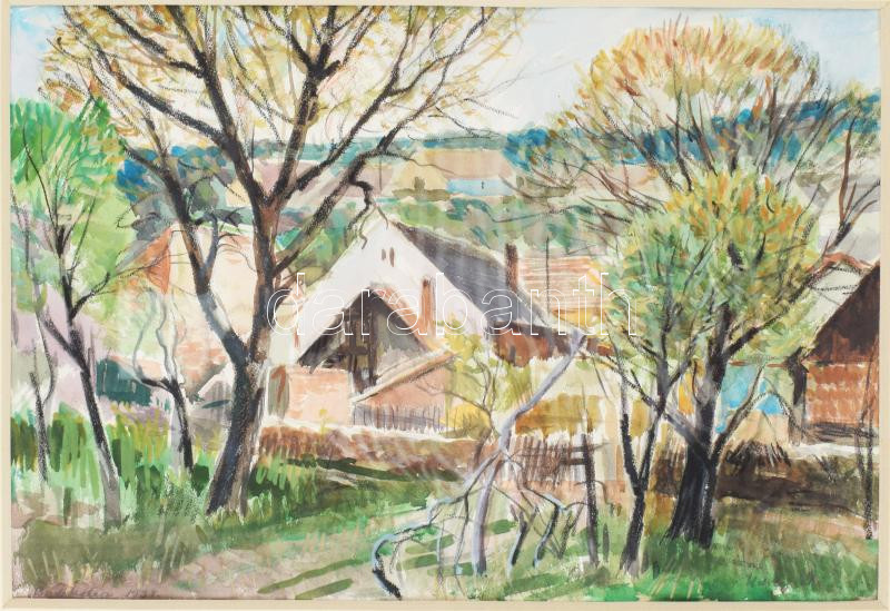 Leírás: Udvary Pál (1900-1987): Badacsony. Akvarell, papír, jelzett, üvegezett sérült fakeretben, 30x45 cm