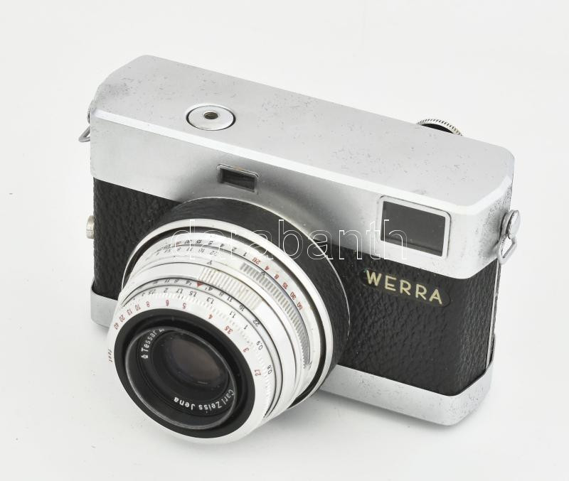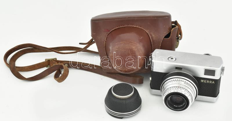 cca 1961-1964 Carl Zeiss Jena Werra 3 fényképezőgép, Tessar 50mm f/2.8 objektívvel, sérült sapkával, eredeti bőr tokjában / Vintage German camera, in original leather case