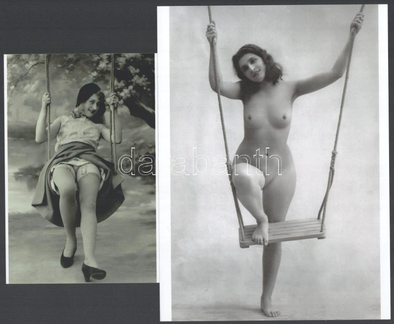 Leírás: ,,Hintázni meg jaj de jó!" - szolidan erotikus felvételek, 2 db modern nagyítás jelzés nélkül, 21x15 cm és 15x10 cm