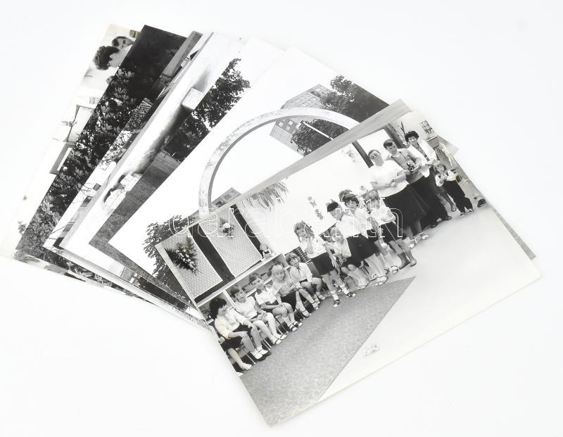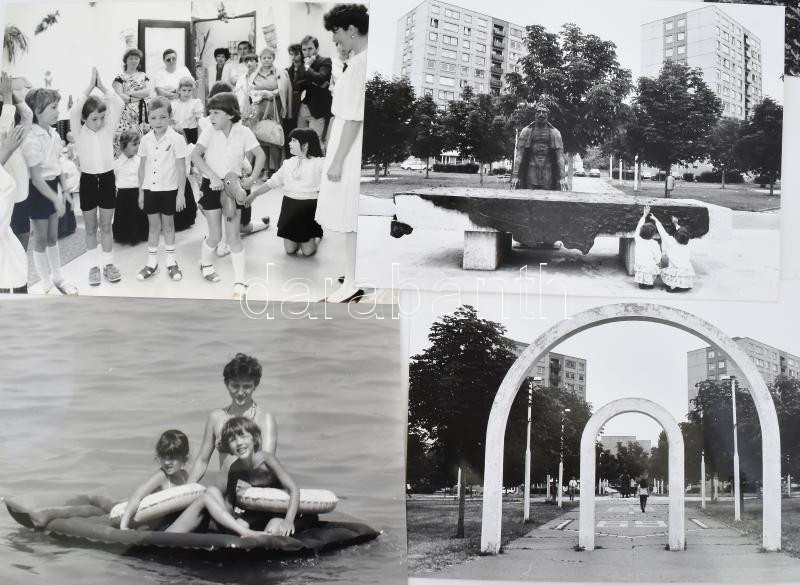 Leírás: Kútvölgyi Mihály (1944-2023) 10 darab fotója, cca 1970, nyaralás, iskolai események, köztéri szobrok témában, 18x12