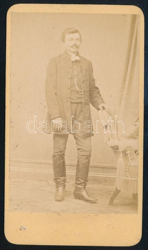 Leírás: cca 1870 Férfiportré, keményhátú fotó Licskó János (Pest/Gyöngyös) műterméből, 10,5×6,5 cm