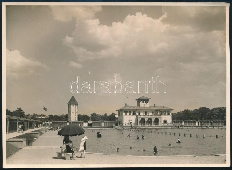 Leírás: cca 1930 A kecskeméti strandfürdő, fotó, hátoldalon pecséttel és felirattal, szép állapotban, 12,5×17 cm