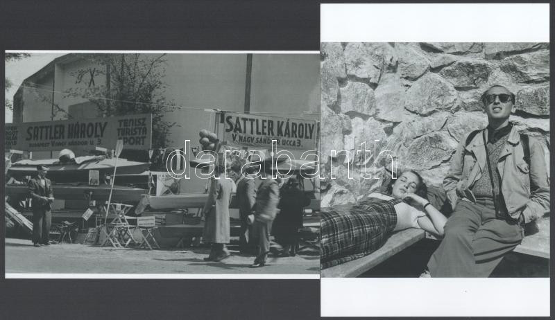 cca 1935 Bergsmann Pál (?-?) budapesti fotóművész és vadevezős hagyatékából 2 db jelzés nélküli modern nagyítás (Önarckép a párjával; Sportszer vásár Bp-en), Bergsmann is tagja volt a - rövid ideig létező - Modern Magyar Fényképezők Társaságának, 21x15 cm és 15x21 cm