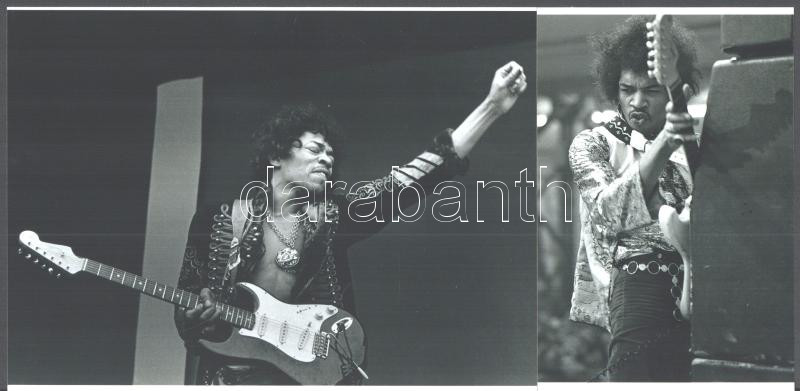 cca 1967-1968 Jimi Hendrix (1942-1970) amerikai énekes, gitáros, zeneszerző a színpadon, 2 db modern nagyítás a néhai Népművelési Intézet könnyűzenei referensének gyűjteményéből, jelzés nélkül, 15x21 cm és 15x10 cm