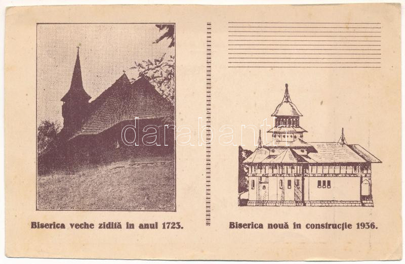 Székelykocsárd, Kocsárd, Lunca Muresului; Biserica veche zidita in anul 1723. Biserica noua in constructie 1936 / régi templom (épült 1723-ban), új templom építés alatt / old church, new church under construction (vágott / cut)