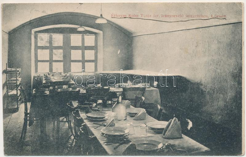 1911 Lőcse, Levoca; étterem Kohn Teréz izraelita (zsidó) leánynevelő i... https://www.darabanth.com/hu/469-Gyorsarveres/469.0/Kepeslapok/Felvidek~1500006/1911-Locse-Levoca-etterem-Kohn-Terez-izraelita-zsido-leanynevelo-intezeteben-belso-Di~II3173569