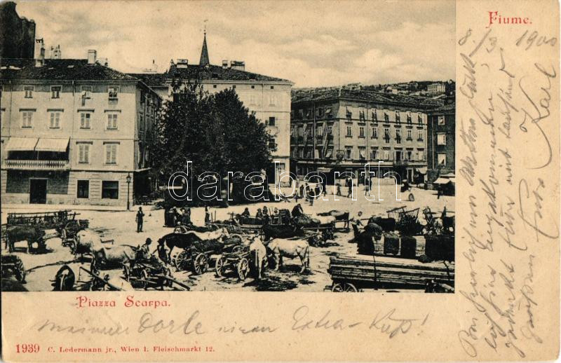 1900 Fiume, Rijeka; Piazza Scarpa / tér, piac / market, square https://www.darabanth.com/hu/469-Gyorsarveres/469.0/Kepeslapok/Horvatorszag~1500008/1900-Fiume-Rijeka-Piazza-Scarpa-ter-piac-market-square~II3141959