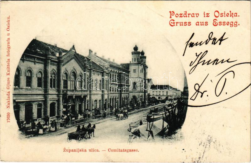 1901 Eszék, Essegg, Osijek; Zupanijska ulica / Comitatsgasse / utca, z... https://www.darabanth.com/hu/469-Gyorsarveres/469.0/Kepeslapok/Horvatorszag~1500008/1901-Eszek-Essegg-Osijek-Zupanijska-ulica-Comitatsgasse-utca-zsinagoga-piac-street-syn~II3172153