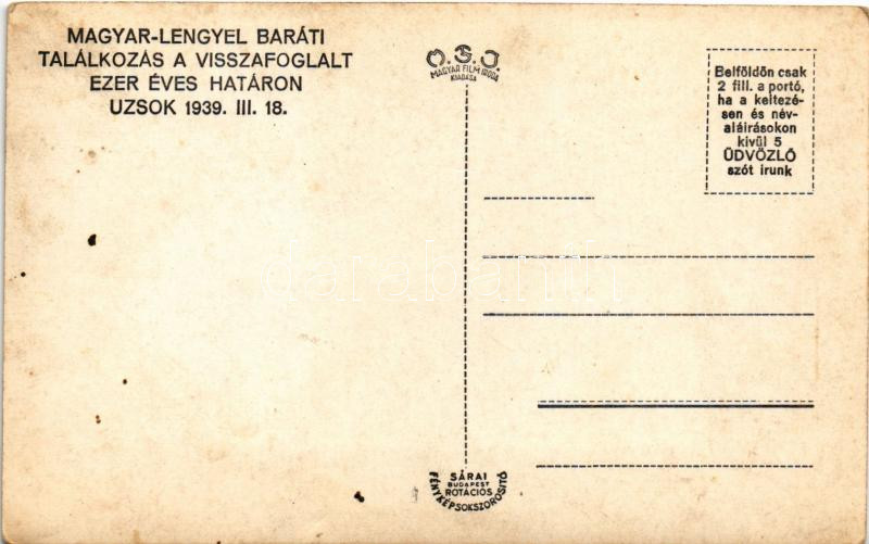 1939 Uzsok, Uzok, Uzhok; Magyar-Lengyel baráti találkozás a visszafogl... https://www.darabanth.com/hu/469-Gyorsarveres/469.0/Kepeslapok/Karpatalja~1500007/1939-Uzsok-Uzok-Uzhok-Magyar-Lengyel-barati-talalkozas-a-visszafoglalt-ezereves-hataron-bor~II3168911