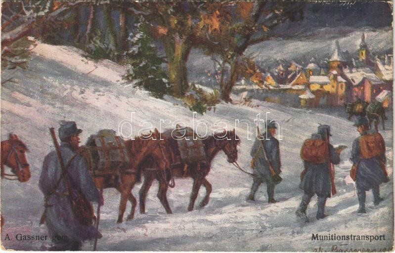 Munitionstransport. Offizielle Karte für Rotes Kreuz, Kriegsfürsorgeamt Kriegshilfsbüro Nr. 290. / WWI Austro-Hungarian K.u.K. military art postcard, support fund s: A. Gassner (EK)