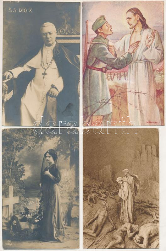 Leírás: 21 db RÉGI vallás motívum képeslap vegyes minőségben / 21 pre-1945 religion motive postcards in mixed quality
