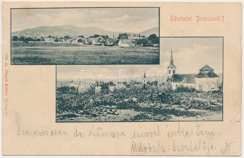 Leírás: 1903 Pomáz, látkép. Divald Károly 176. sz. (kis szakadás / small tear)