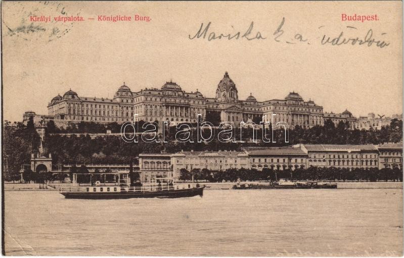 1909 Budapest I. Királyi vár, gőzhajó. Divald Károly műintézete 13-190... https://www.darabanth.com/hu/469-Gyorsarveres/469.0/Kepeslapok/Magyarorszag~1500004/1909-Budapest-I-Kiralyi-var-gozhajo-Divald-Karoly-muintezete-13-1909-EK~II2488836