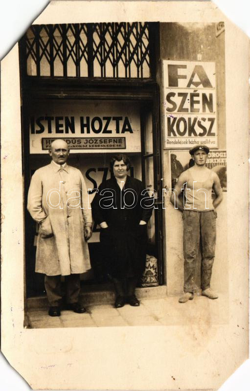 Leírás: 1933 Budapest IX. Hegedűs Józsefné fa-, szén- és zöldségkereskedő üzlete. Mester utca 55-57. photo (vágott / cut)