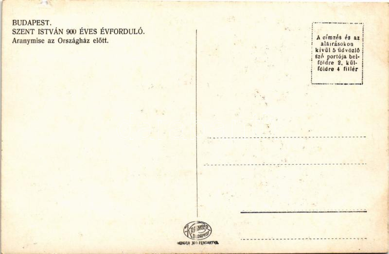 Leírás: 1938 Budapest V. Szent István 900 éves évforduló, aranymise az Országház előtt (szakadás / tear)