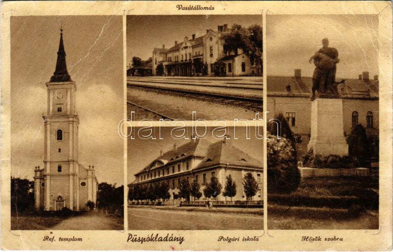 1940 Püspökladány, Református templom, vasútállomás, polgári iskola, h... https://www.darabanth.com/hu/469-Gyorsarveres/469.0/Kepeslapok/Magyarorszag~1500004/1940-Puspokladany-Reformatus-templom-vasutallomas-polgari-iskola-hosok-szobra-Rb~II3172252