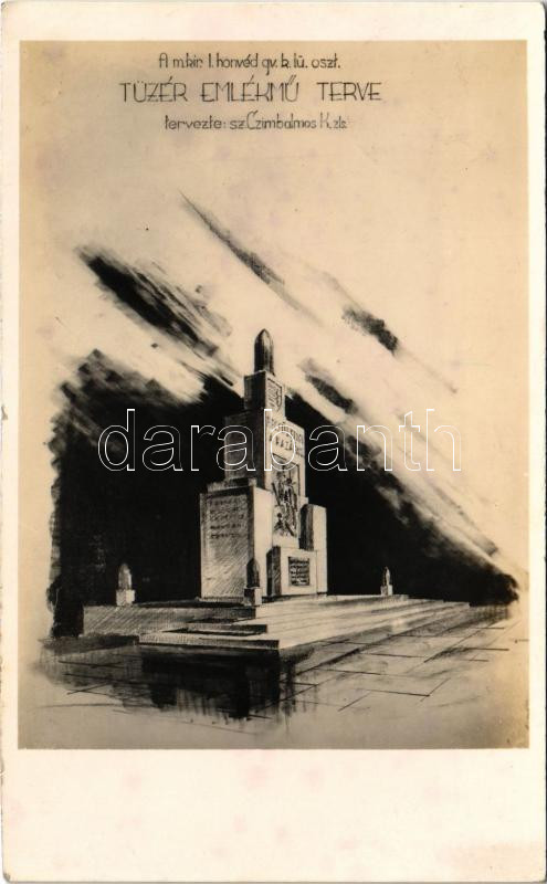 1942 Budapest X. Hungária körút, Andrássy laktanya, A m. kir. I. honvéd gv. k. tü. oszt. hősi halottainak tüzér emlékmű terve. Tervezte: sz. Czimbalmos K. zls. (fl)