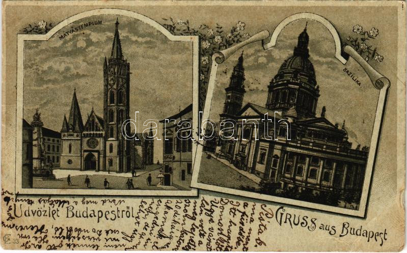 Budapest, Mátyás templom és Bazilika. Art Nouveau floral, litho (Rb) https://www.darabanth.com/hu/469-Gyorsarveres/469.0/Kepeslapok/Magyarorszag~1500004/Budapest-Matyas-templom-es-Bazilika-Art-Nouveau-floral-litho-Rb~II3169200