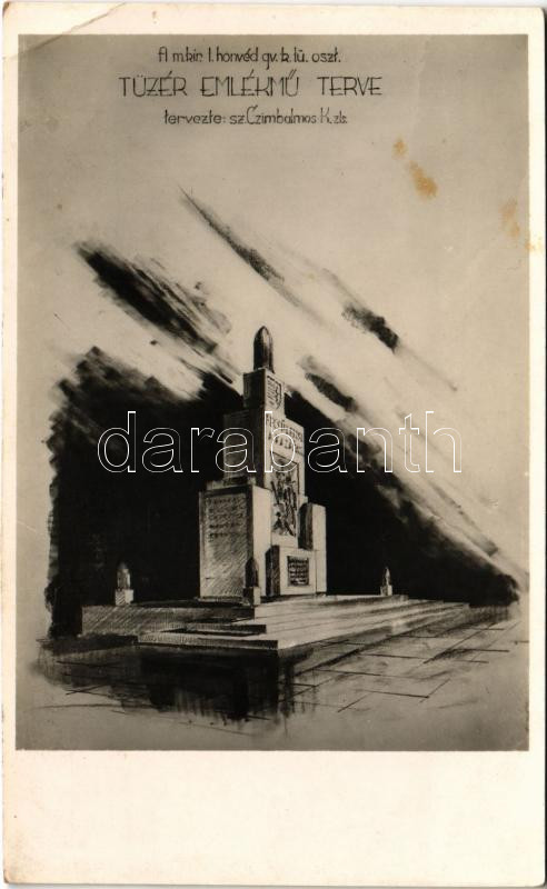 Budapest X. Hungária körút, Andrássy laktanya, A m. kir. I. honvéd gv. k. tü. oszt. hősi halottainak tüzér emlékmű terve. Tervezte: sz. Czimbalmos K. zls. (EB)