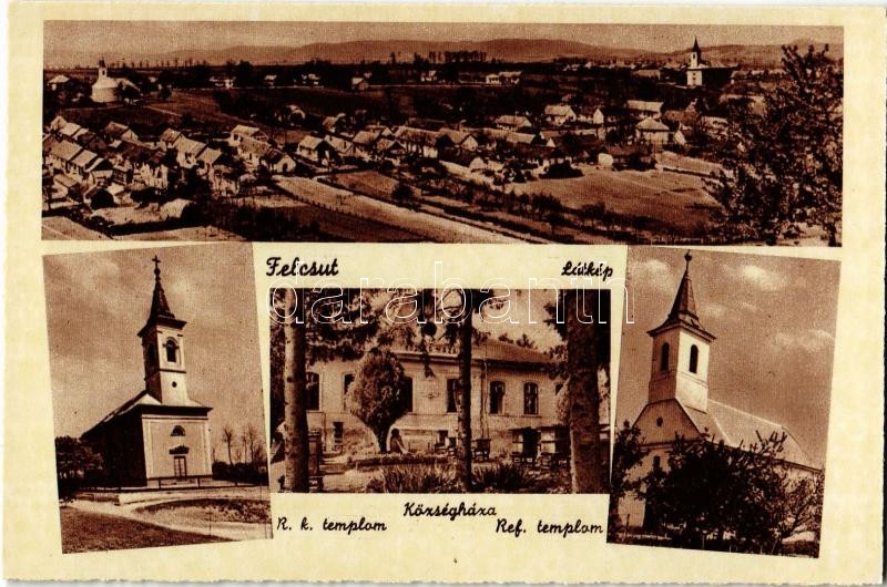 Leírás: Felcsút, Látkép, római katolikus templom, községháza, református templom