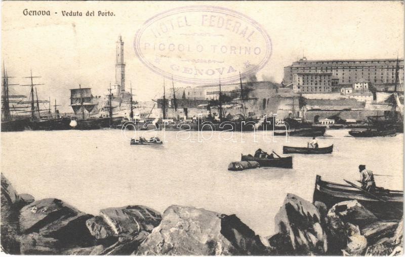 Genova, Genoa; Veduta del Porto / port, fishing boats, steamship https://www.darabanth.com/hu/469-Gyorsarveres/469.0/Kepeslapok/Olaszorszag~1500092/Genova-Genoa-Veduta-del-Porto-port-fishing-boats-steamship~II2475819
