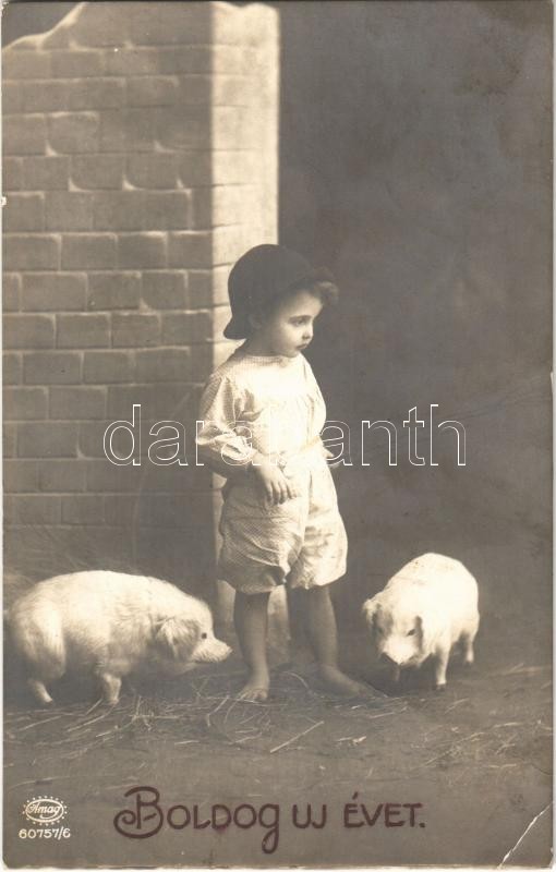 1915 Boldog Újévet! / New Year greeting card, boy with pigs (EK) https://www.darabanth.com/hu/469-Gyorsarveres/469.0/Kepeslapok/Udvozlolapok-Unnepek~1500055/1915-Boldog-Ujevet-New-Year-greeting-card-boy-with-pigs-EK~II2408707