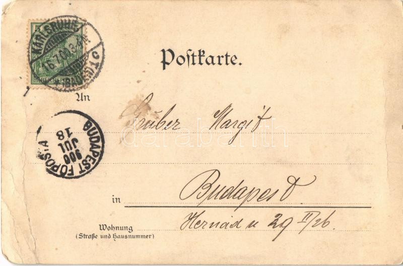 Leírás: 1900 Maximilian und Maria-Luise / wedding of Prince Maximilian of Baden and Princess Marie Louise of Hanover. Art Nouveau, floral, coat of arms (EM)