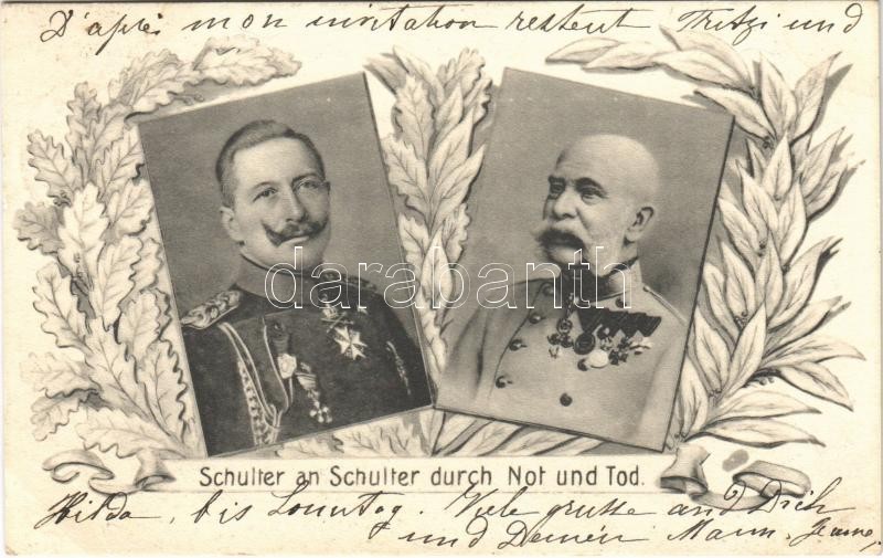1915 Schulter an Schulter durch Not und Tod / Wilhelm II, Franz Joseph I. WWI German and Austro-Hungarian K.u.K. military propaganda, Viribus Unitis (EK)