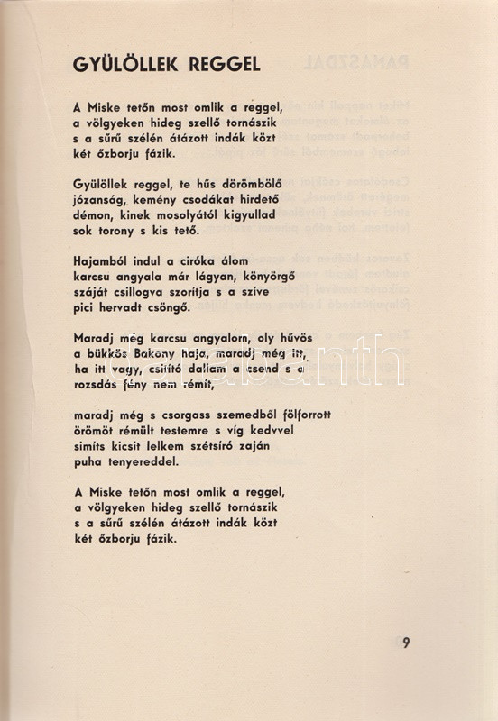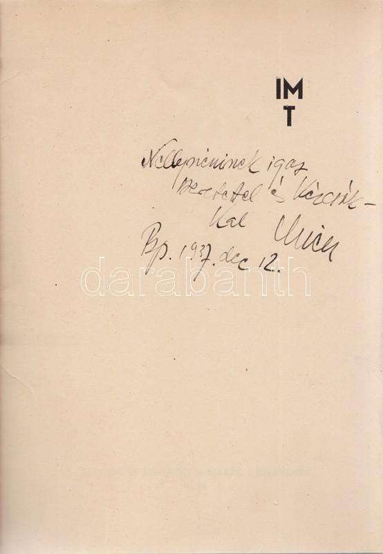 Dedikált: ,,Nelly néninek igaz szeretettel és kézcsókkal: Misu. Bp. 1937. dec. 17.'' Oldalszámozáson belül Iscserekov András négy egészoldalas fametszetével. A rendes kiadáson kívül bibliofilek számára 20 számozott példány is készült.