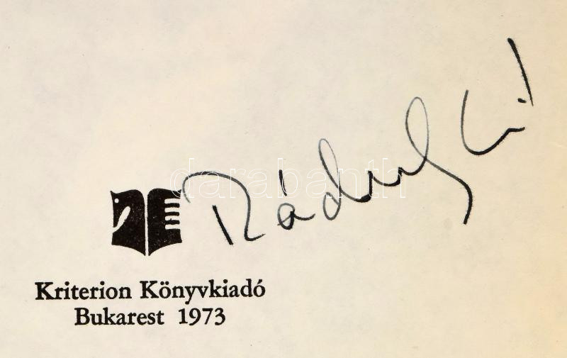 Kós Károly: Kalotaszegi krónika. Hét Ãrás. Bp., 1973, Kriterion. ElsÅ‘ kiadás. Egészoldalas illusztrációkkal. Kiadói egészvászon-kötés, kiadói kissé sérült, foltos kiadói papÃr védÅ‘borÃtóban, a borÃtón és néhány lap szélén ázásnyomokkal. A cÃmlapon Ráday Mihály (1942-2021) Kossuth-dÃjas filmoperatÅ‘r, rendezÅ‘, televÃziós szerkesztÅ‘, a Budapesti VárosvédÅ‘ Egyesület elnökének autográf névbejegyzésével.