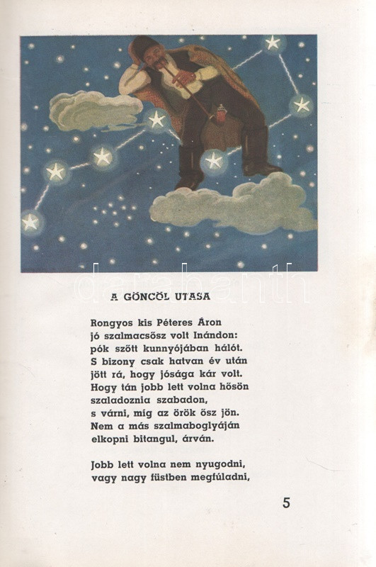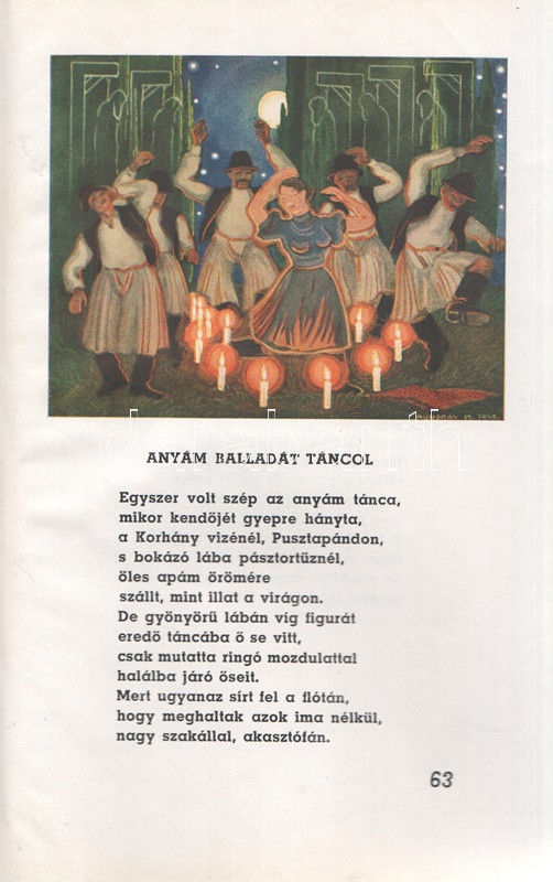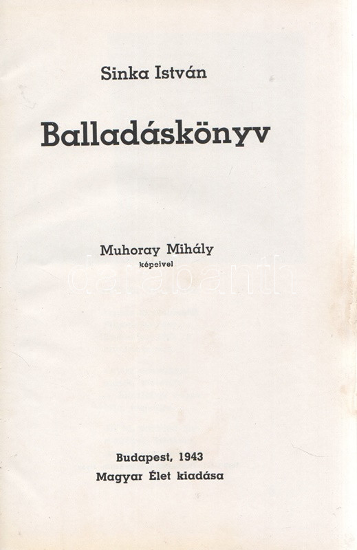 Sinka István (1897-1969) költő, író köteteit 1939-től Püski Sándor Magyar Élet Kiadója adta ki, verseskötetében a költő legerősebb műfajának, a balladában alkot emlékezetes szövegeket. Oldalszámozáson belül Muhoray Mihály színes rajzaival gazdagon illusztrálva.
