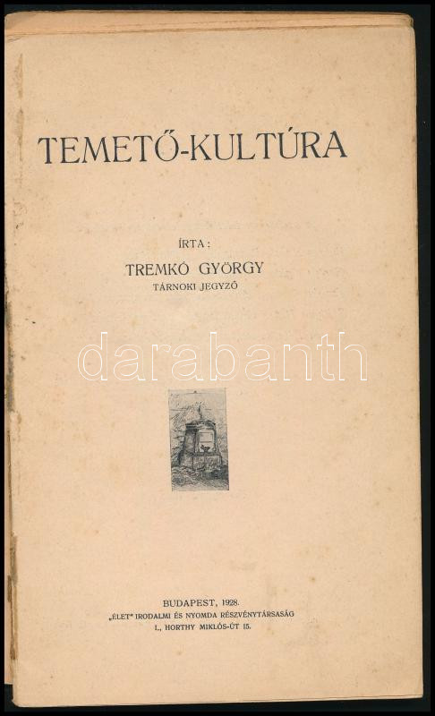 Tremkó György: Temető-kultura. Bp.,1928,Szerzői,("Élet"-ny.)... https://www.darabanth.com/hu/469-Gyorsarveres/469.0/Konyvek/Konyvek-Egyeb-ritkasagok~2000025/Tremko-Gyorgy-Temeto-kultura-Bp-1928-Szerzoi-Elet-ny-75-p-Gazdag-fekete-feher-kepan~II3107468