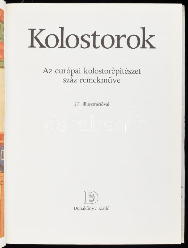 Marianne Bernhard: Kolostorok. Az európai kolostorépítészet száz remekműve. Ford.: Abai Ágnes, Kovács Zoltán. Bp., 1994, Dunakönyv. Gazdag képanyaggal illusztrált. Kiadói aranyozott egészvászon-kötés, kiadói papír védőborítóban, jó állapotban.