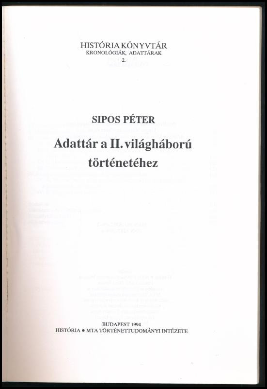 Sipos Péter: Adattár a II. világháború történetéhez. História Könyvtár... https://www.darabanth.com/hu/469-Gyorsarveres/469.0/Konyvek/Konyvek-Tortenelem~1000037/Sipos-Peter-Adattar-a-II-vilaghaboru-tortenetehez-Historia-Konyvtar-Kronologiak-Ada~II3171213