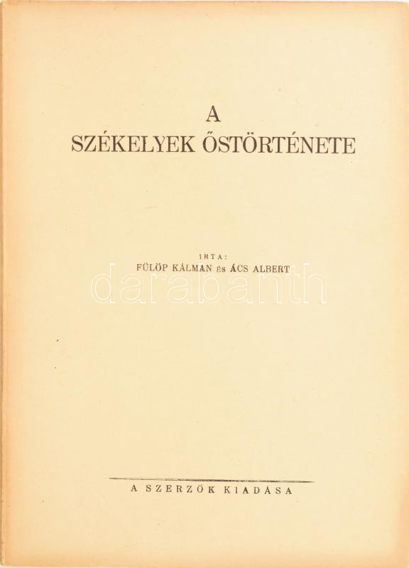 Ács Albert - Fülöp Kálmán: A székelyek őstörténete Budapest [1939], a szerzők kiadása, Bányai és Várkonyi nyomda. 61p. Kiadói papírborítóval, hibátlan állapotban