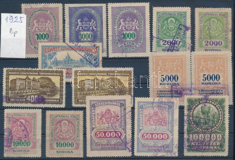 Budapest 1925 15 db városi okmánybélyeg