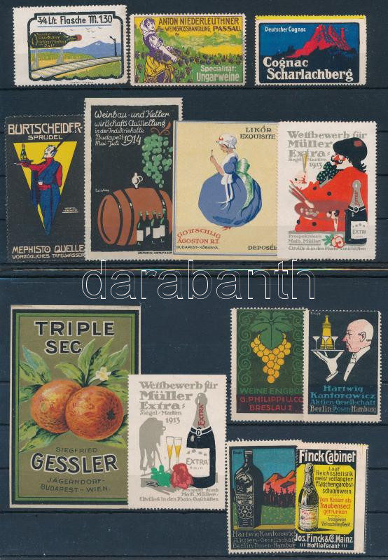 13 db levélzáró bor és szeszes italok témában https://www.darabanth.com/hu/469-Gyorsarveres/469.0/Magyar-filatelia-es-postatortenet/Parafilatelia~500018/13-db-levelzaro-bor-es-szeszes-italok-temaban~II3170240