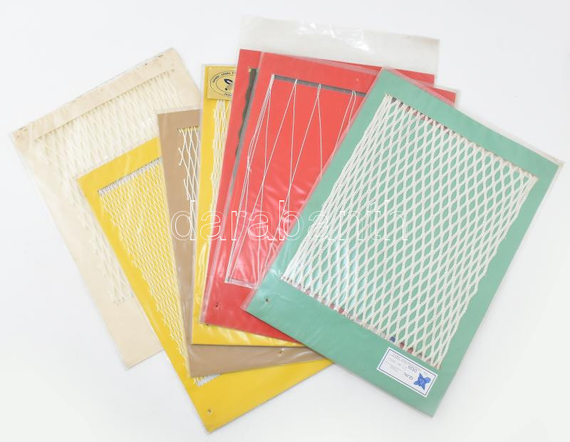 Leírás: 7 db termékminta a Szegedi Kenderfonógyárból, 25x20 cm körüli méretben