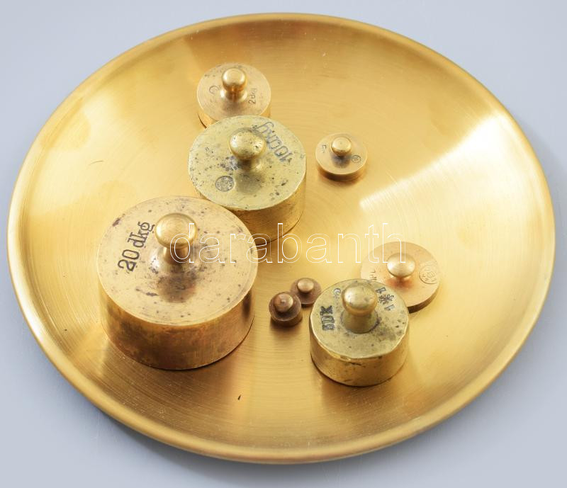 8 darab klf réz súly, tálcán
