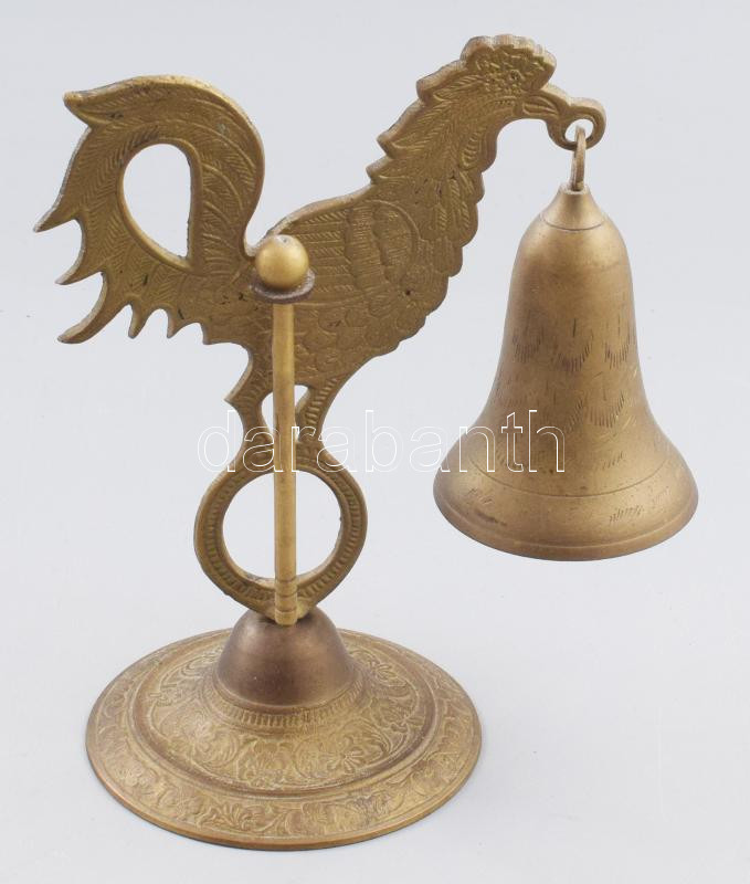 Bronz kakas figurás gong ütővel, m: 18,5 cm