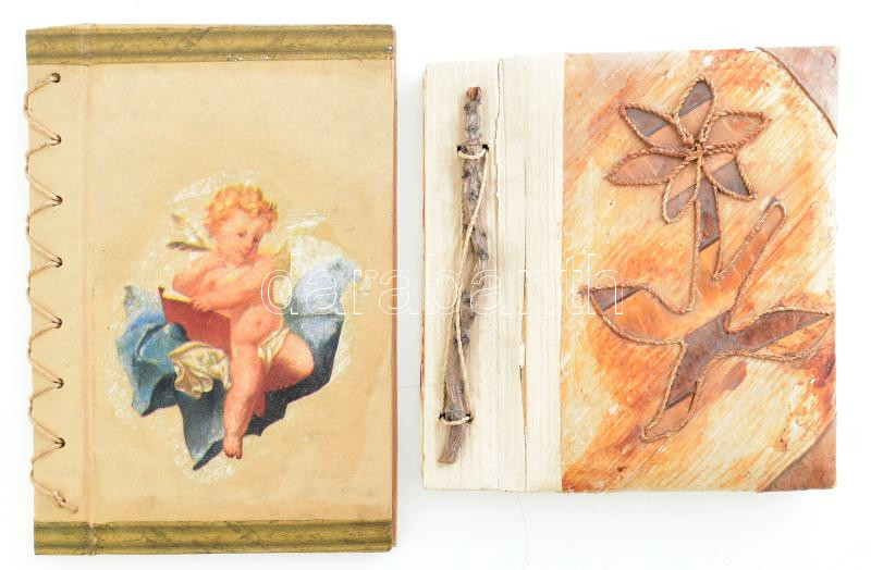 Leírás: Egyedi kötésű füzet és album, üresek, 21x14,5 cm és 17x16 cm