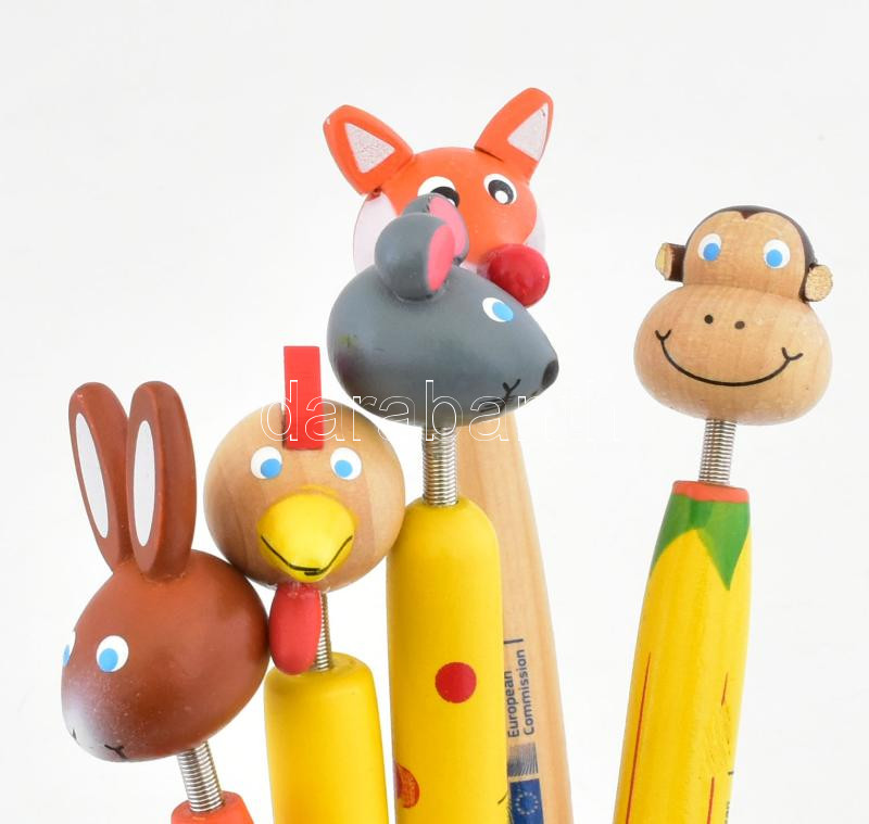 Leírás: Európai Bizottság reklámos 5 darab toll, állatfejekkel díszített
