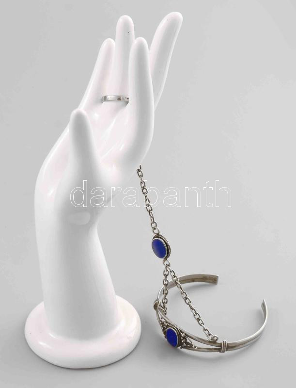 Leírás: Fém design karkötő és gyűrű, porcelán kézzel, m: 18,5 cm