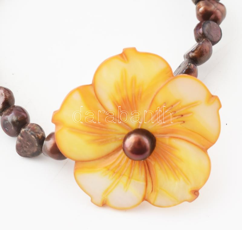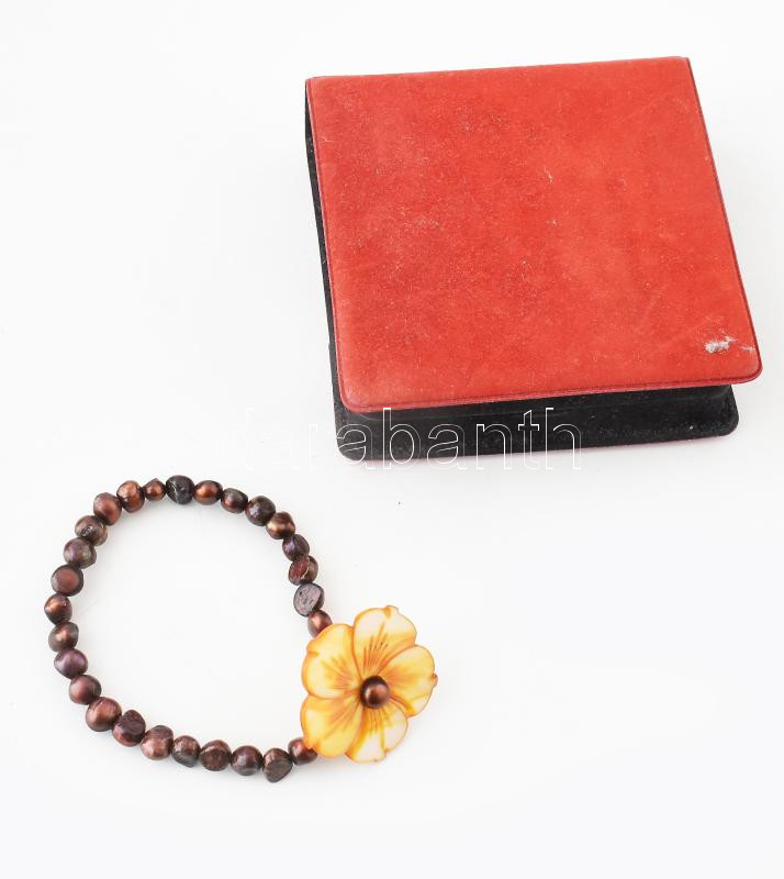 Leírás: Gioielleria olasz édesvízi gyöngy karkötő festett virág dísszel dobozában