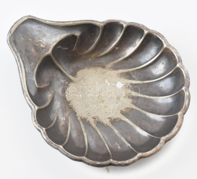 Leírás: Herrmann antik ezüstözött kagyló alakú kínáló, h: 17,5 cm
