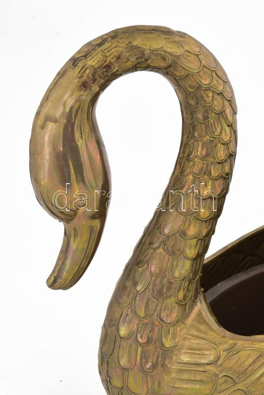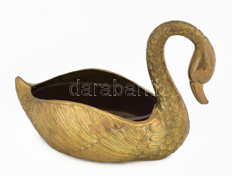 Leírás: Kacsa alakú bronz kaspó, műanyag betéttel, 29x16x21 cm